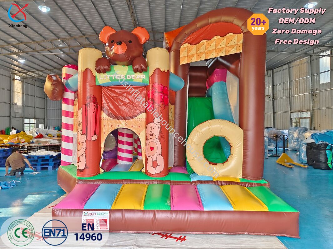 บ้านเป่าลมรูปหมีน่ารักสำหรับเด็กพร้อมสไลเดอร์จากผู้ผลิต 0